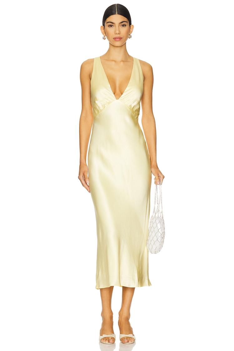 LA LUNE PLUNGED CROSS BACK MIDI DRESS