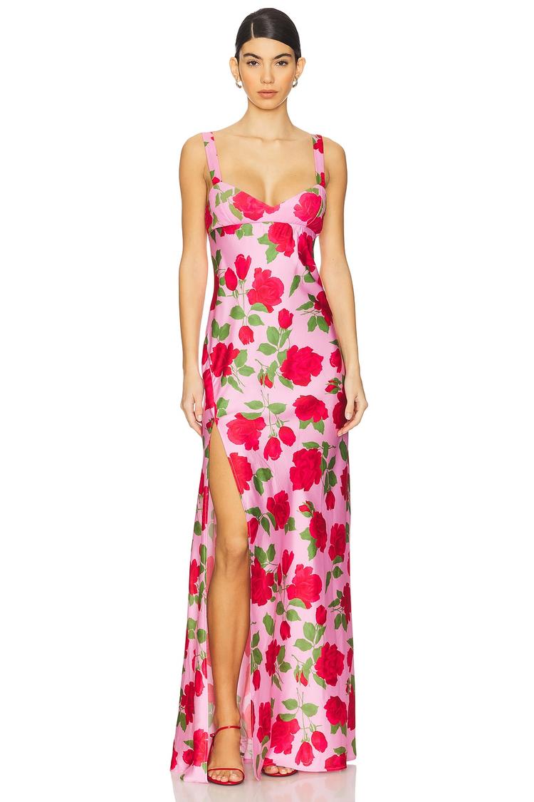 pink floral maxi gown