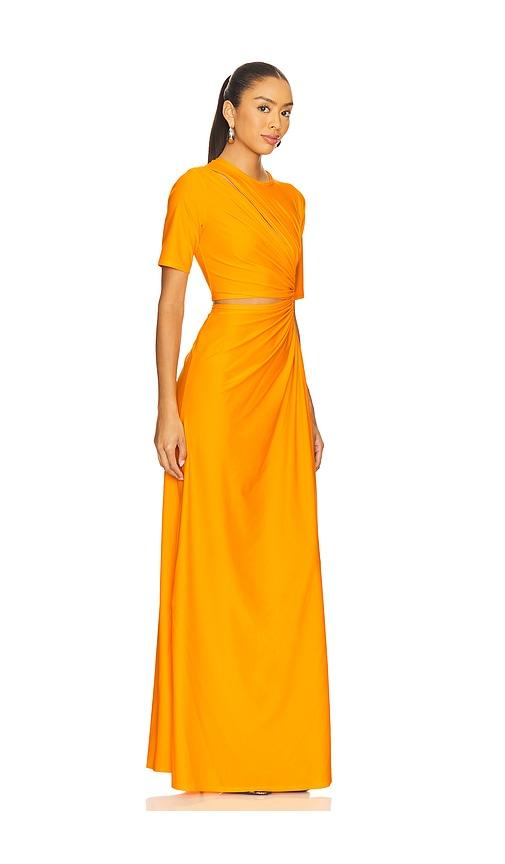 SID NEIGUM FOR FWRD GATHERED SLIT DRESS IN ORANGE.