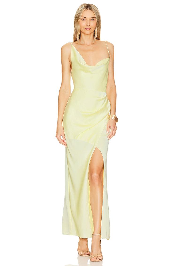 yellow satin slip dress