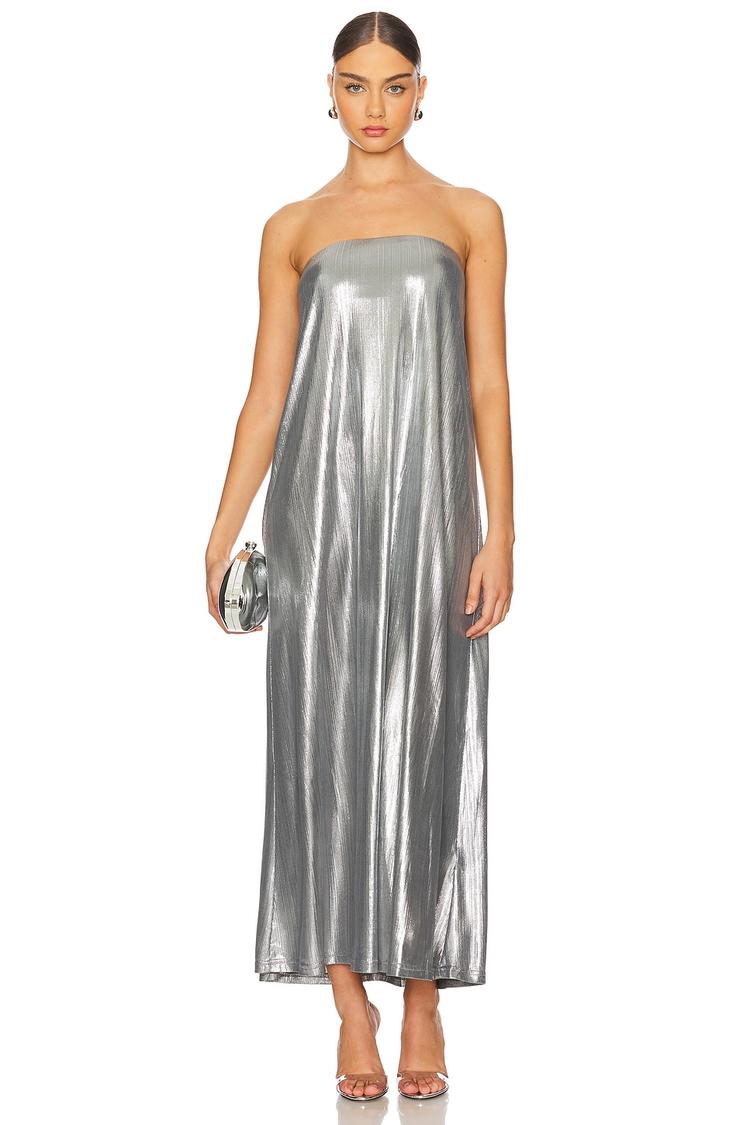 metallic silver midi dress