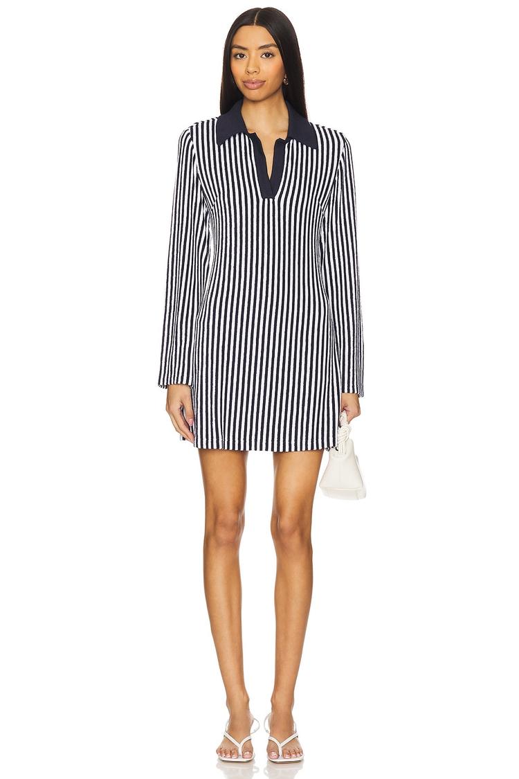 A crisp striped tunic dress in a relaxed mini length offers effortless style with its loose fit and long sleeves. Crafted from a breathable blend of viscose, cotton, and elastane terrycloth fabric, it features a chic V-neckline and clean hemline, making it ideal for casual outings, brunches, or everyday travel. The all-over black and white vertical stripes lend a modern minimalist vibe perfect for transitional seasons like spring, summer, and autumn.