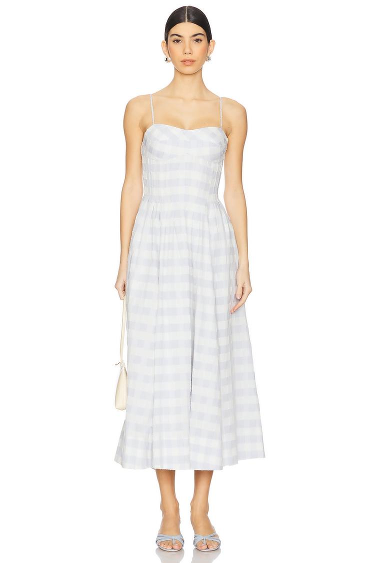 Soft cotton fabric and a flattering A-Line silhouette shape the Kittiya Midi Dress, featuring a romantic sweetheart neckline and delicate spaghetti straps. Its midi length and fitted bodice offer an elegant yet casual vibe, ideal for spring and summer outings. Adjustable straps and side seam pockets add practical comfort, while the all-over blue and white checkered pattern lends timeless charm. Finished with a concealed side zipper and hook-and-eye closure, this fully lined dress transitions effortlessly from brunch to date night or a relaxed vacation day.