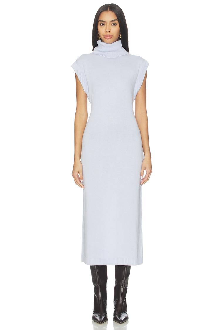Soft knit cotton and cashmere blend shapes a sleek sheath silhouette with a chic turtleneck and sleeveless design. This close-fitting midi dress features a refined back vent that adds subtle draping and ease of movement. Its minimalist aesthetic and matte light gray hue make it a versatile choice for casual days, workwear, or stylish brunches. The pull-on style enhances comfort without sacrificing elegance, making it a perfect layer for cooler autumn and winter seasons.