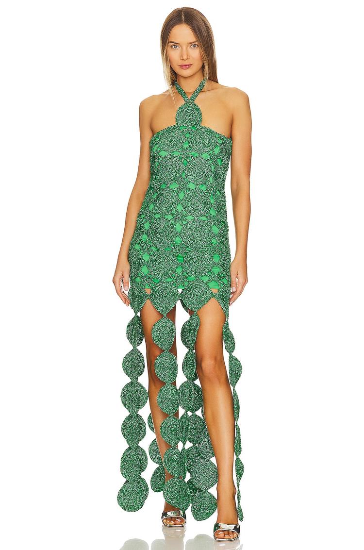 green metallic dress