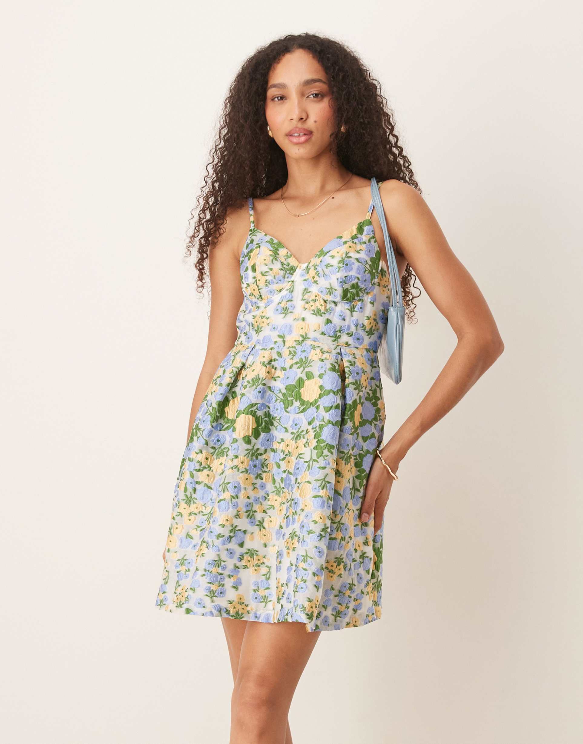 Sister Jane Deco Bloom jacquard wrap mini dress in blue floral