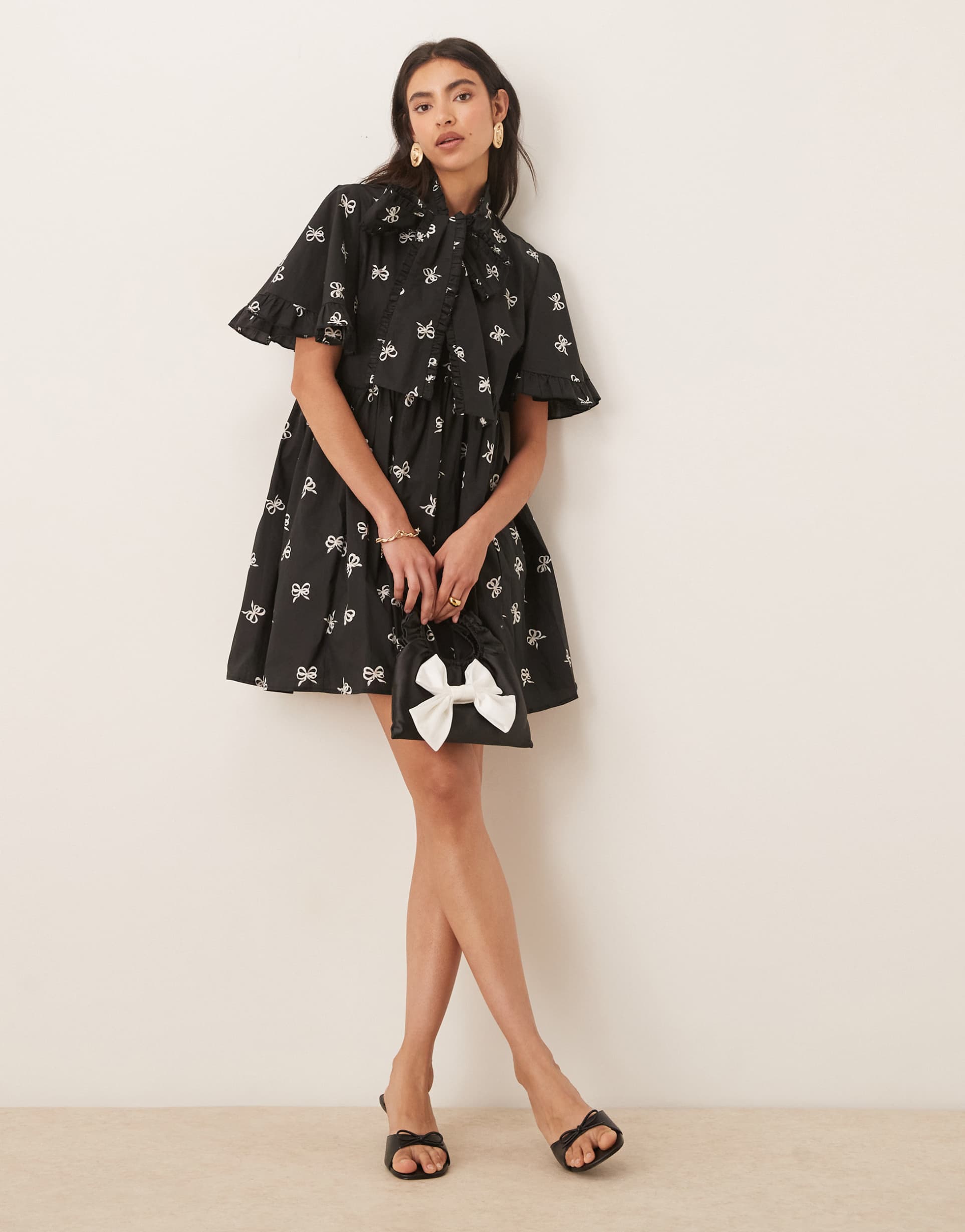 SISTER JANE BREEZE MINI DRESS IN BLACK AND WHITE BOW PRINT