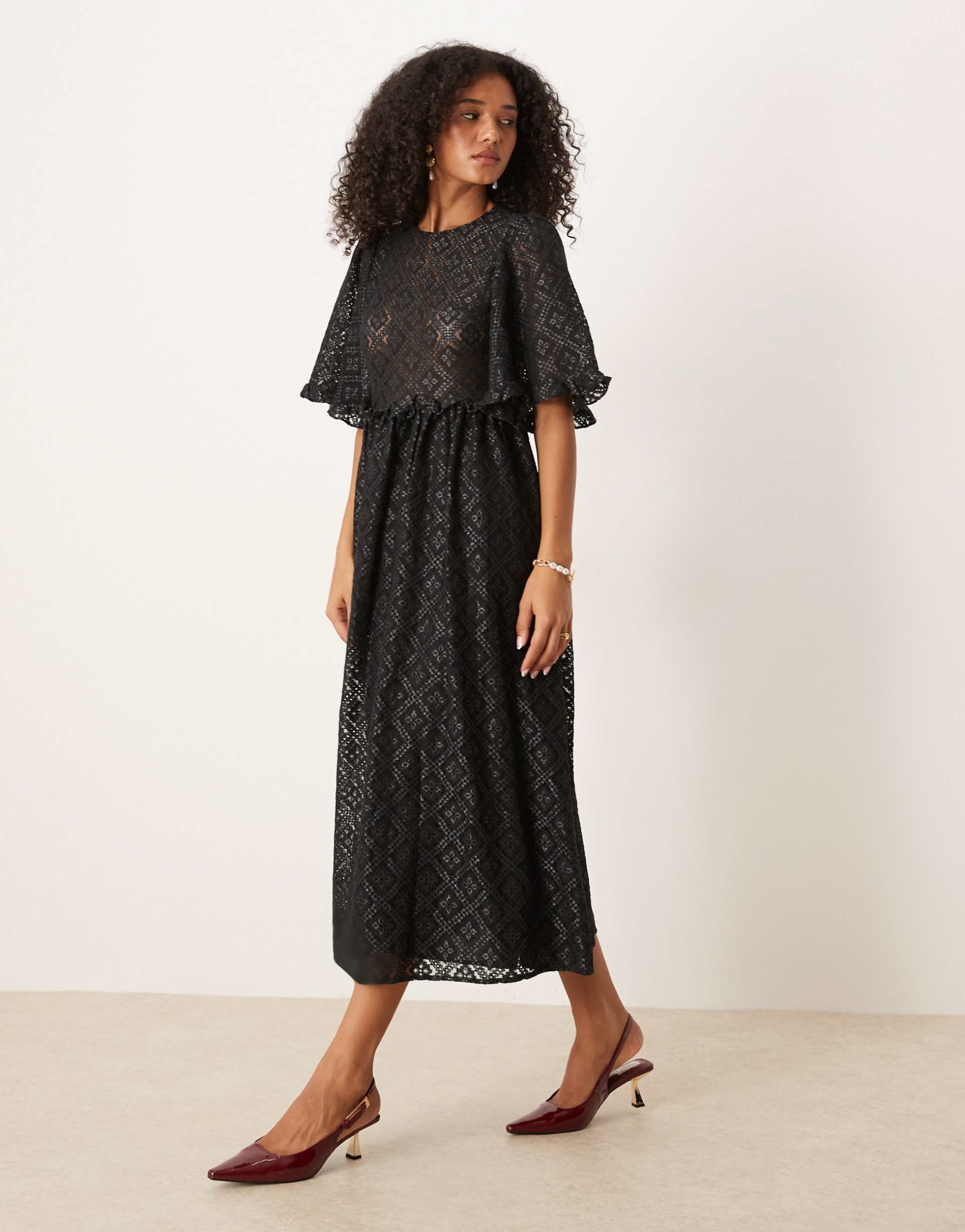 SISTER JANE LACE BELL SLEEVES MIDAXI DRESS IN BLACK