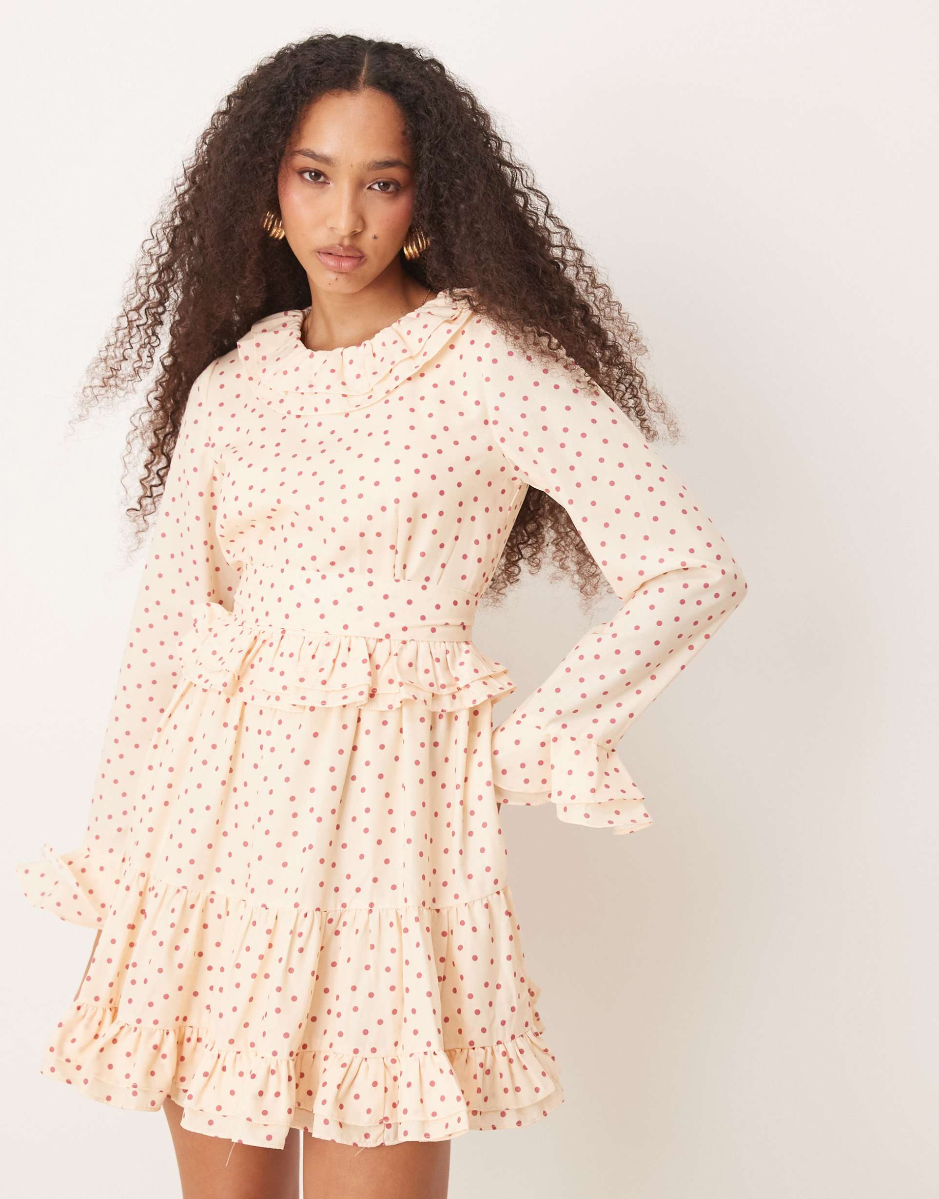 SISTER JANE RUFFLE MINI DRESS IN PINK AND CREAM POLKA DOT