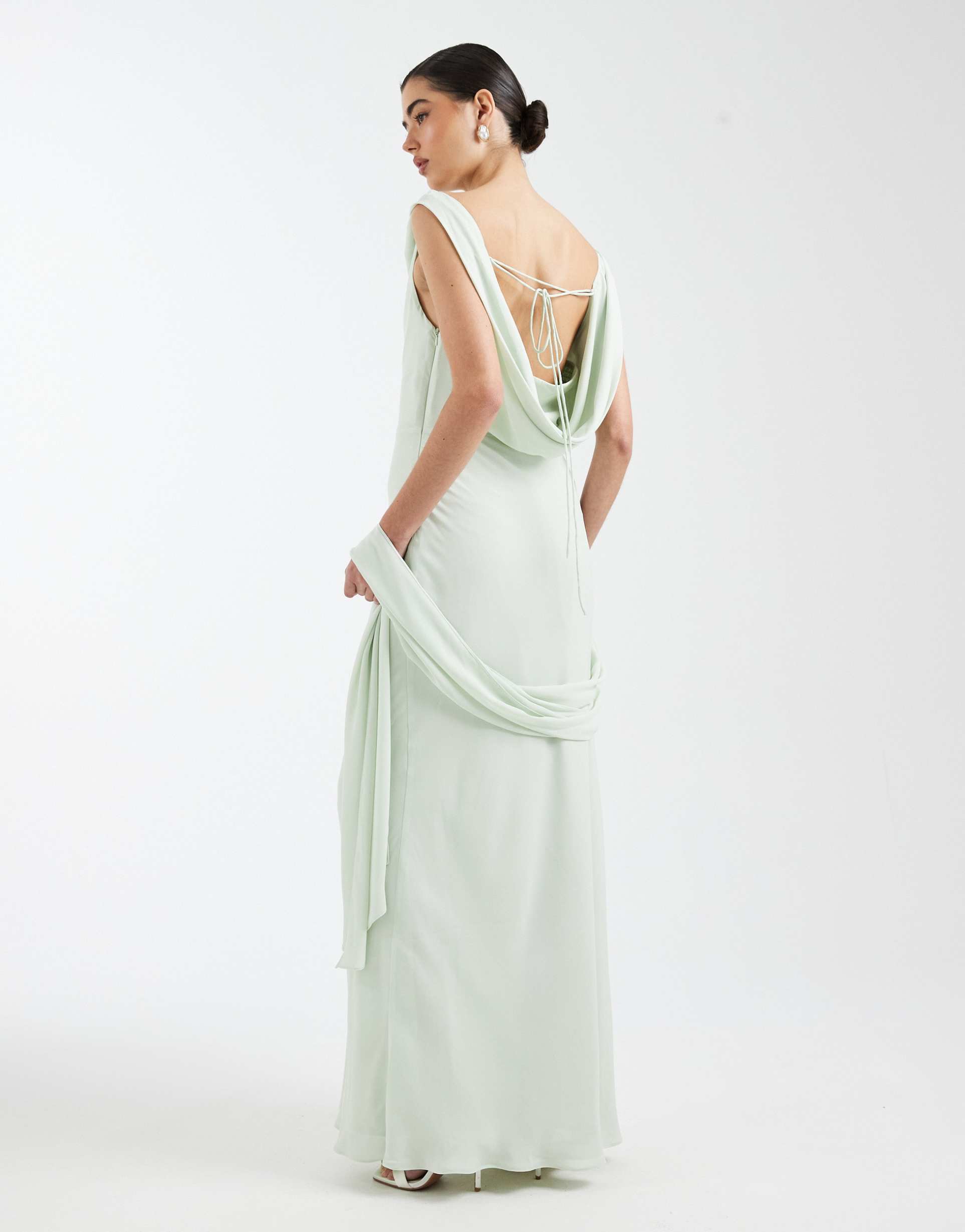 SIX STORIES BRIDESMAID CREPE PLUNGE COWL FRONT MAXI DRESS IN MINT GREEN