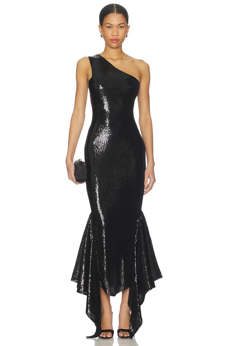 Shimmering black sequins cover this fitted mermaid dress, creating an elegant, figure-flattering silhouette. The asymmetric one-shoulder neckline and sleeveless design add a modern, sexy edge, while the dramatic high-low fishtail hem enhances movement and sophistication. Crafted from smooth polyester with a concealed back zipper, this fully lined gown is perfect for cocktail parties, semi-formal events, or a stylish night out. Its sleek, sophisticated style makes it a standout piece for special occasions year-round.