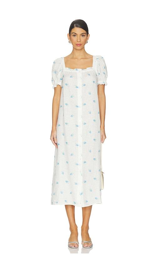 SLEEPER BRIGITTE LINEN MIDI DRESS IN WHITE,BLUE.