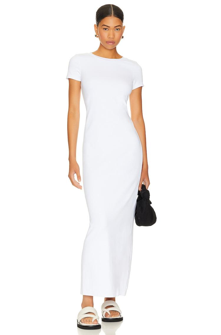 A sleek, fitted silhouette in soft, midweight cotton jersey offers effortless style with the Blair Dress. Its maxi length and classic round neckline create a streamlined look, complemented by short, regular sleeves for comfort. The pull-on design enhances ease of wear, making it perfect for casual brunches, everyday outings, or relaxed date nights. Minimalist and casual chic, this white sheath dress embodies versatile elegance for spring through autumn wardrobes.