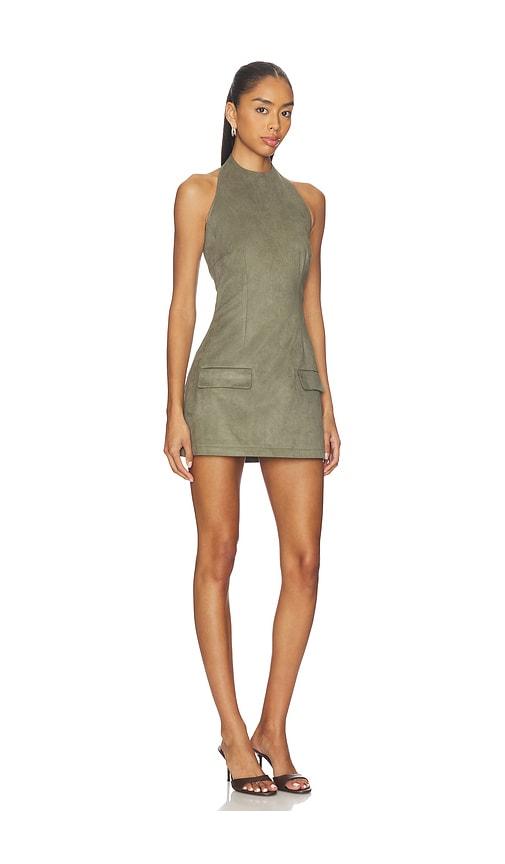 SNDYS AMELIA FAUX SUEDE MINI DRESS IN OLIVE.