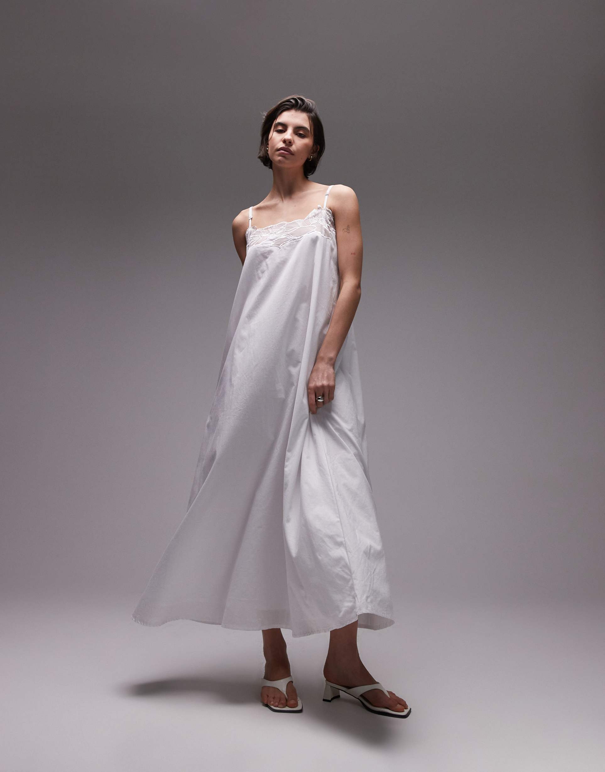 SNDYS FLOWER LACE TRIM CAMI TRAPEZE MAXI DRESS IN WHITE