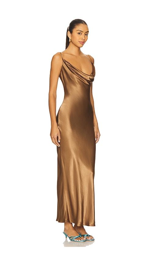 SNDYS SKIN MAXI DRESS IN METALLIC BRONZE.