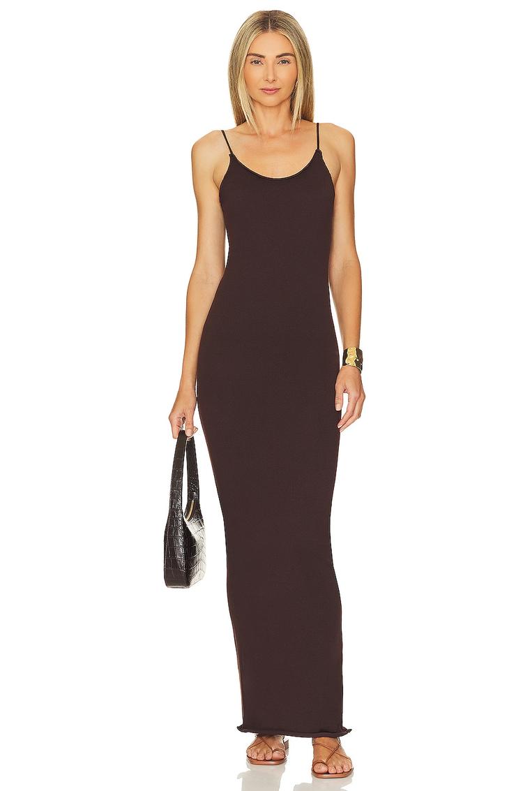 A sleek matte black maxi slip dress features a slim fit with self-tie spaghetti straps and a flattering open back. The pull-on design and back vent slit add ease and subtle allure, making it an ideal choice for warm spring and summer evenings. Crafted from smooth polyester, this minimalist silhouette transitions effortlessly from date nights to cocktail parties and stylish nights out. The simple U-neckline and sleeveless cut enhance its sexy, modern appeal, perfect for those seeking understated elegance with a hint of edge.