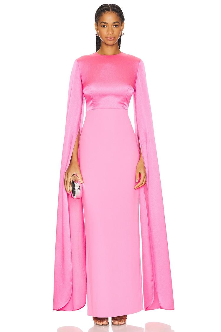 A sleek column silhouette in matte pink satin and crepe fabric blends elegance with sophistication. The maxi length and fitted cut accentuate the figure, while the round neckline and long regular sleeves add timeless charm. A hidden back zipper closure and back vent ensure comfort and ease of movement. Perfect for formal occasions, cocktail events, and gala evenings, this dress exudes refined style and grace, making it a standout choice for special celebrations.