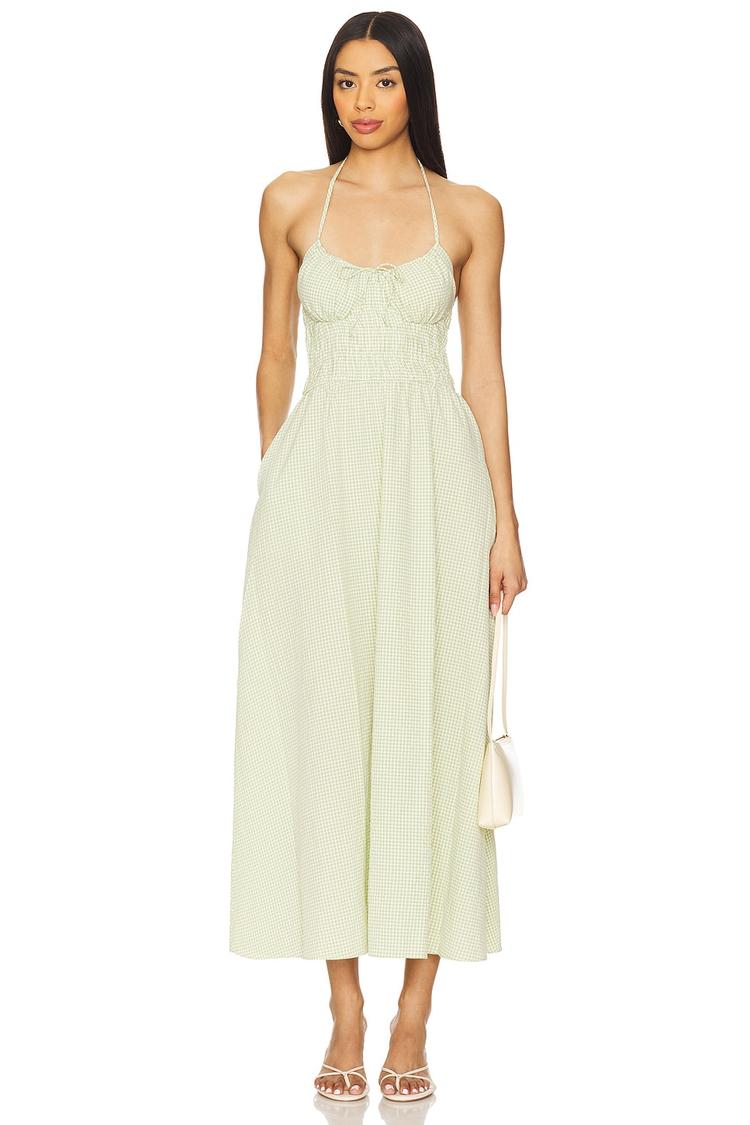 Soft seersucker fabric and a flowing midi hem create an effortlessly chic look with this off-white halter neck slip dress. The elastic bodice offers comfortable fit while the self-tie back adds adjustable style. Featuring side pockets for practical ease, this minimalist dress is perfect for casual outings, spring brunches, or vacation days. Its lightweight polyester-elastane blend ensures breathable comfort throughout warmer seasons, making it a versatile staple for your relaxed yet stylish wardrobe.