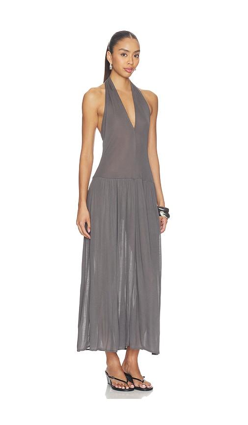 ST. AGNI FLUID JERSEY HALTER DRESS IN GREY.