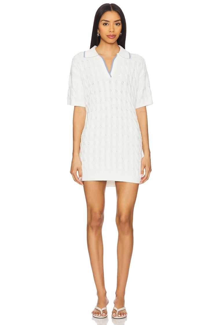 Soft cotton cable-knit fabric and a relaxed shift silhouette define this mini dress with half sleeves and a flattering V-neckline. The clean hemline and comfortable pull-on styling make it an effortless choice for spring and summer days. Its minimalist yet chic design is perfect for casual outings, brunches, or everyday wear, blending comfort with subtle texture for a timeless look.