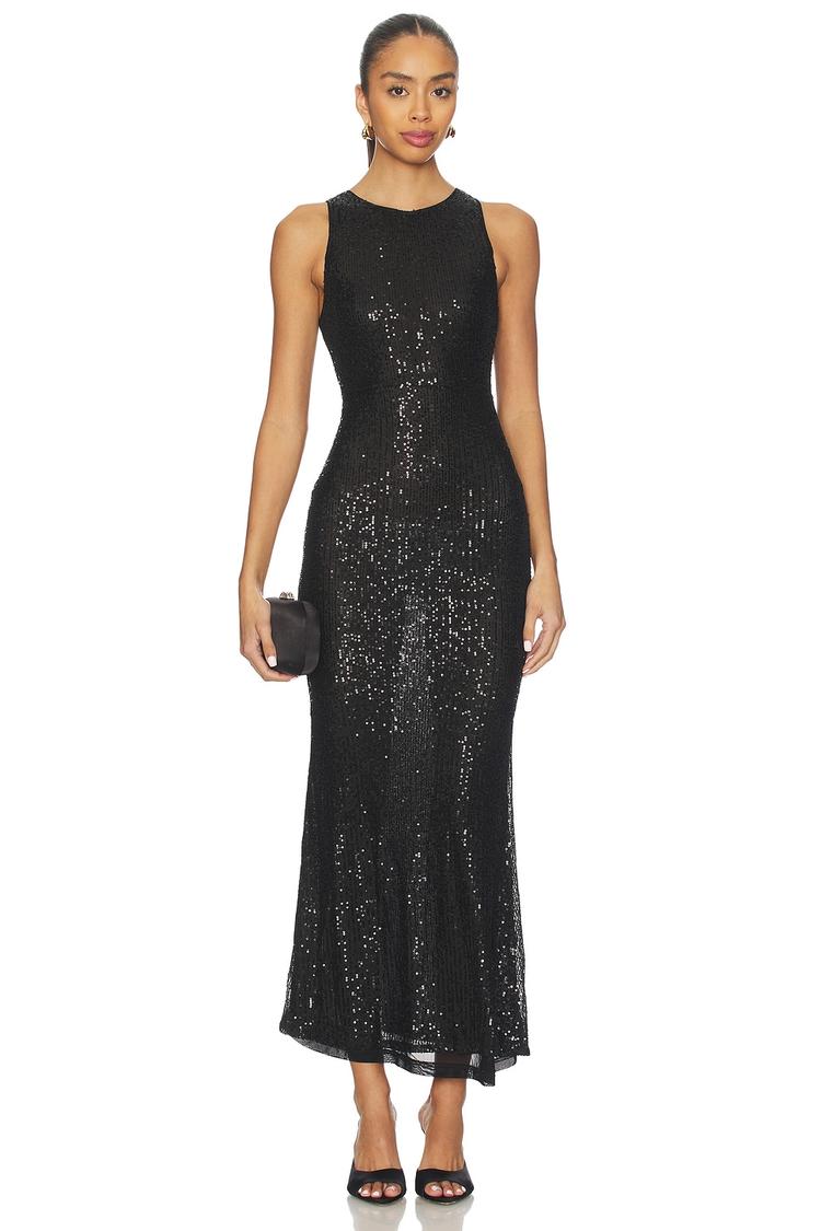 Shimmering black sequins adorn this fitted column maxi dress, creating a sleek silhouette that glides elegantly to the floor. Featuring a sleeveless design with wide straps and a modest round neckline, it pairs classic sophistication with modern allure. The side zipper ensures a smooth fit, while the fully lined polyester-nylon blend adds comfort and structure. Ideal for cocktail parties, night outs, or semi-formal occasions, this timeless piece shines with subtle glamour and graceful simplicity.