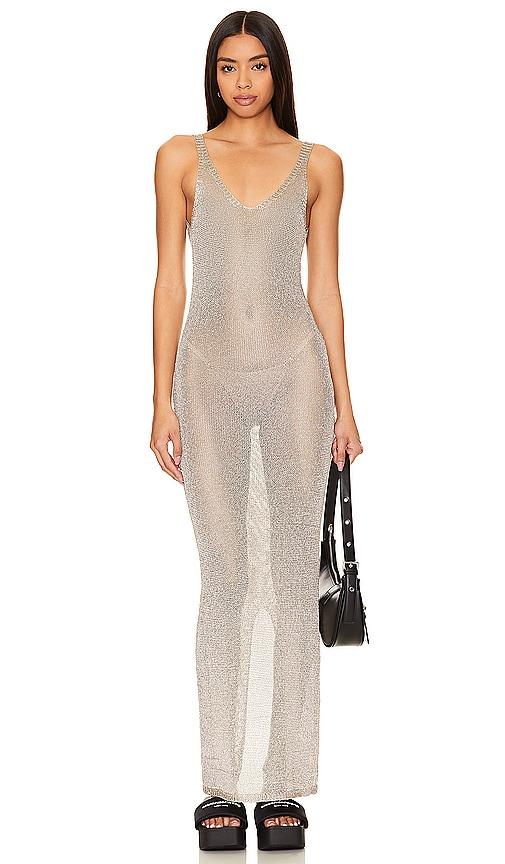 SUPERDOWN EGON MAXI DRESS IN METALLIC GOLD.