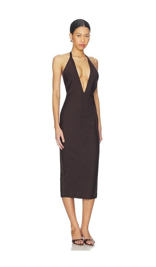 SUPERDOWN KASS BANDAGE MIDI DRESS IN BROWN.