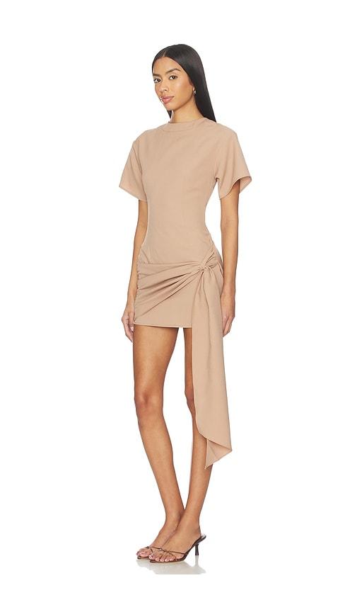 SUPERDOWN KIRANA WRAP FRONT DRESS IN TAUPE.