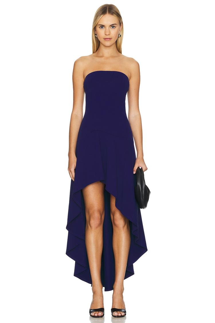 A sleek matte navy tube dress features a striking high-low asymmetric hemline that adds dynamic movement to its slim, strapless silhouette. Crafted from a smooth nylon-elastane blend, this elegant dress offers a comfortable stretch fit perfect for spring, summer, and autumn soirées. The straight neckline and sleeveless design enhance its sophisticated appeal, making it ideal for cocktail parties, night outs, and date nights. Slip it on effortlessly to experience refined style with a modern twist.