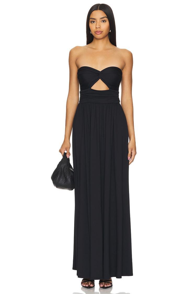 black strapless maxi dress