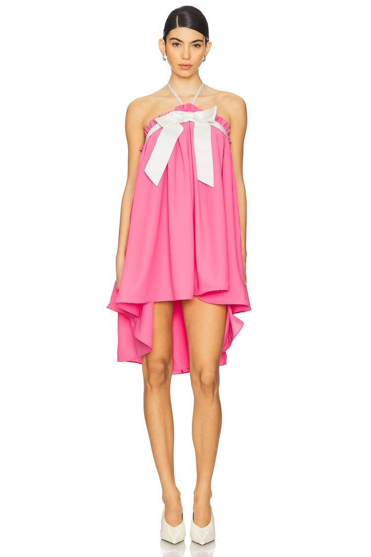 Soft chiffon fabric and a flowing swing silhouette create an effortlessly elegant look with an asymmetrical hemline that adds modern flair. The halter neck with tie closure and strapless sleeves enhance its chic appeal, while the standout white bow at the front and side seam pockets combine playful details with practicality. Ideal for spring and summer, this loose fit dress suits brunches, date nights, cocktail parties, and semi-formal occasions with ease.