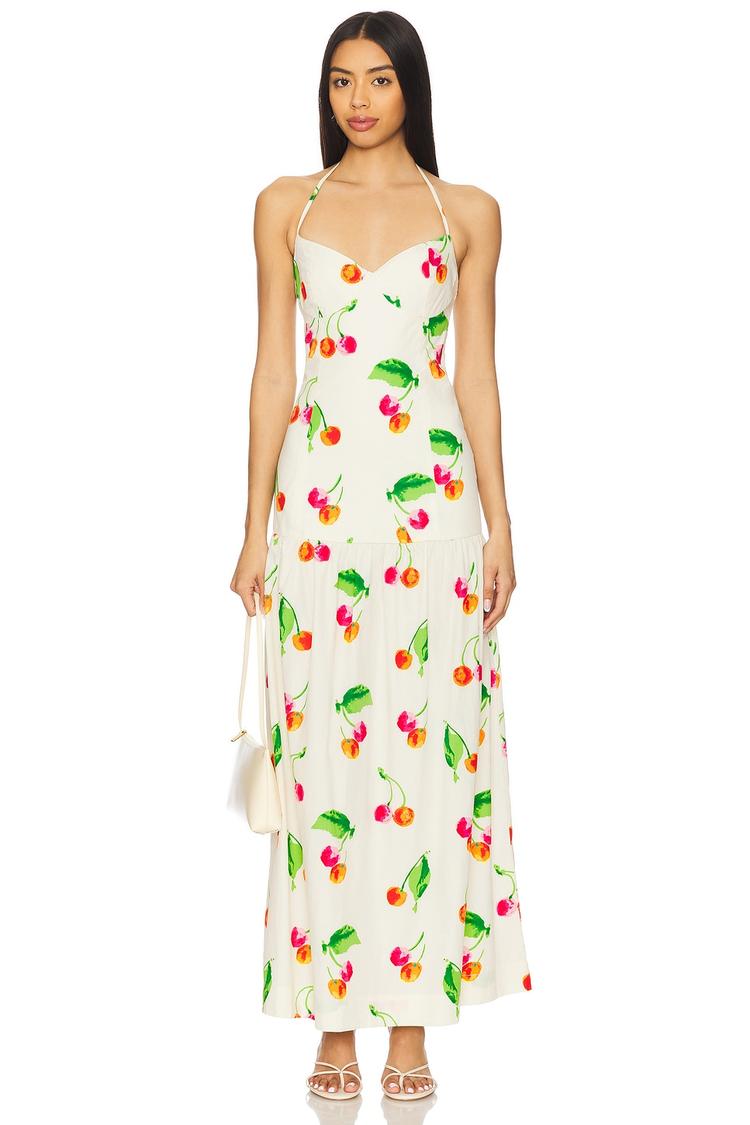 Sunlit days and warm evenings come alive in this flowy maxi slip dress featuring a sweet white crepe fabric adorned with vibrant cherry fruit prints. The sweetheart neckline and delicate spaghetti straps enhance its romantic charm, while the halter self-tie back adds a playful, adjustable fit. Crafted from breathable cotton crepe, it promises comfort and style for spring and summer outings. Ideal for brunches, date nights, or vacation escapes, this dress combines casual chic with effortless elegance in every sway.