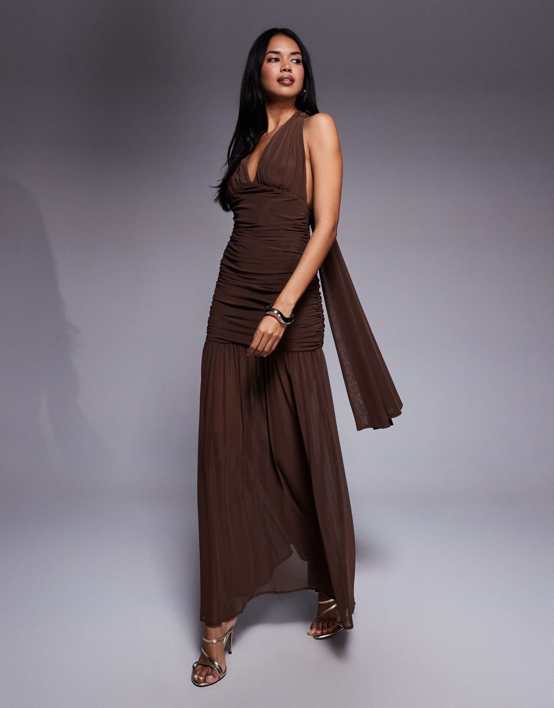 sophisticated brown maxi dress
