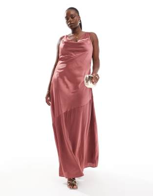 TFNC PLUS SATIN COWL FRONT MAXI DRESS IN MULBERRY