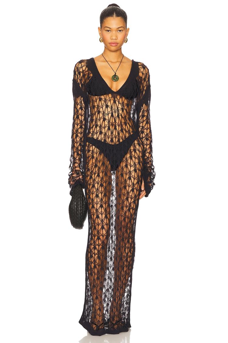 sheer crochet maxi dress