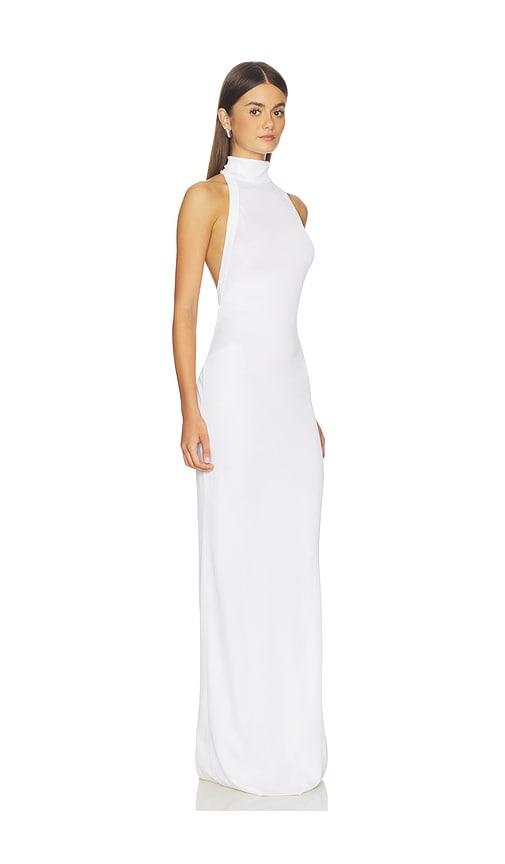 THE ANDAMANE CLEO HALTERNECK MAXI DRESS IN WHITE.