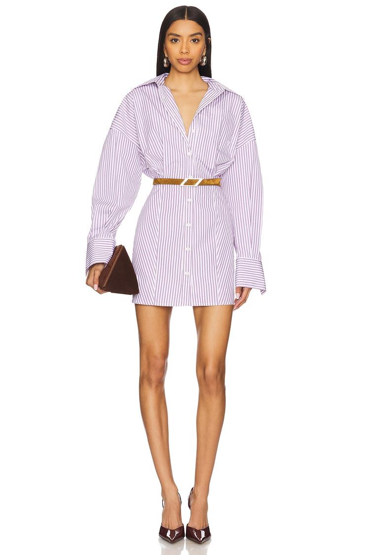 Lightweight cotton poplin and a crisp shirt collar define this mini shirt dress, featuring long sleeves and a front button closure for classic appeal. Its dusty lilac and white striped pattern adds subtle charm, complemented by a breast slip pocket for practical style. The regular fit and clean hemline offer ease and versatility, perfect for casual brunches, relaxed workdays, or date nights in spring through autumn.