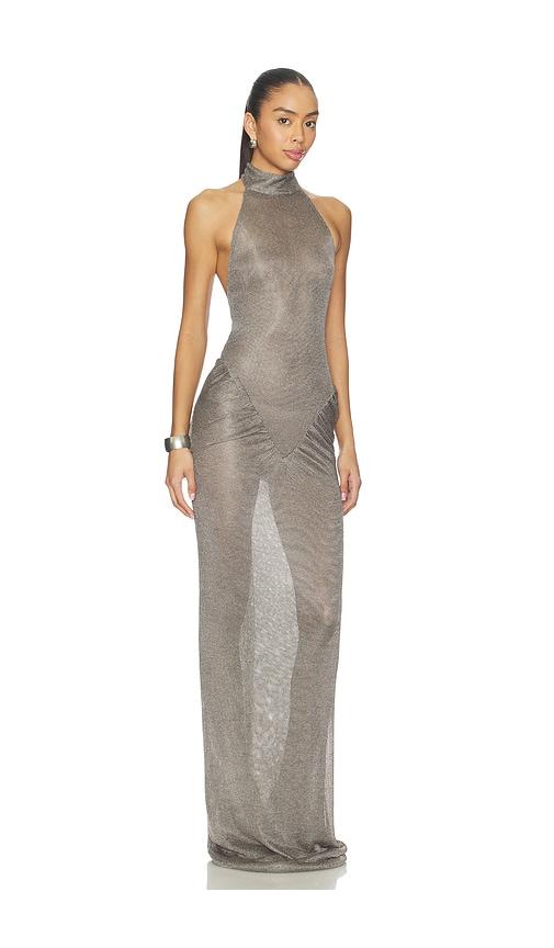 THE NEW ARRIVALS BY ILKYAZ OZEL CASS DRESS IN METALLIC SILVER.