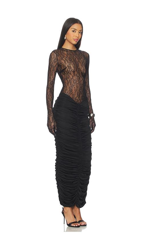 THE NEW ARRIVALS BY ILKYAZ OZEL VIVIENNE LACE MAXI DRESS IN BLACK.