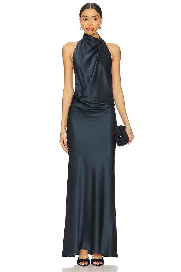 HALTER DRAPE BIAS DRESS