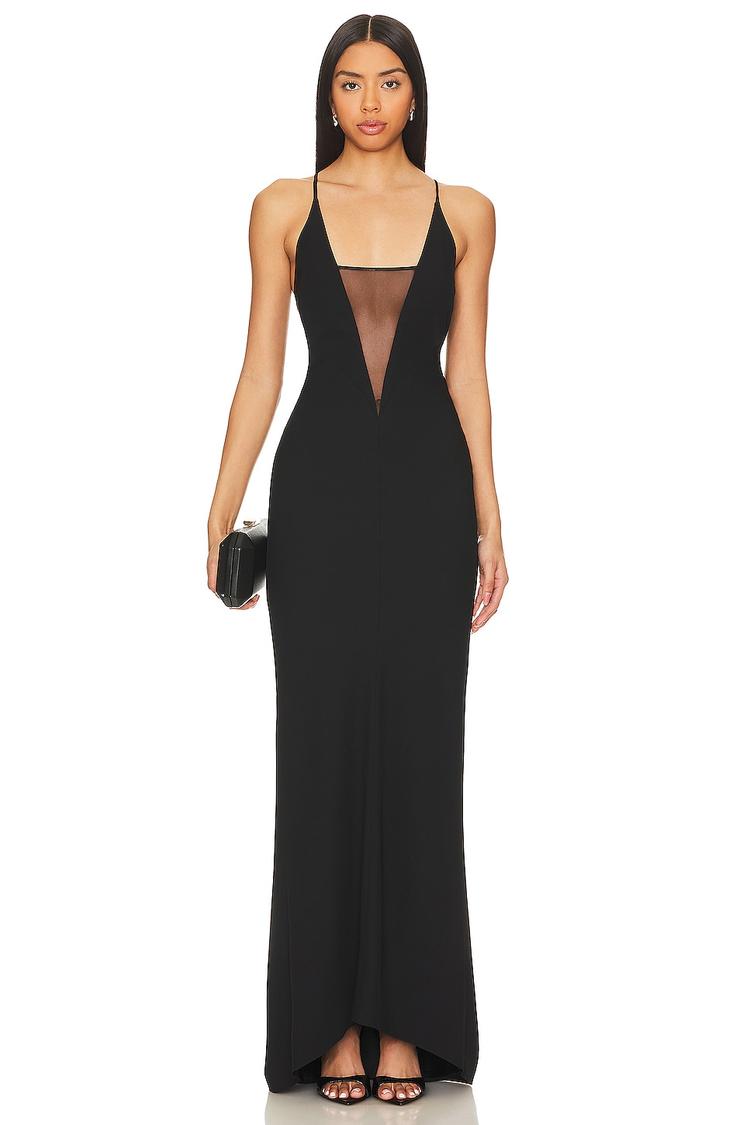 PLUNGE GOWN WITH MESH