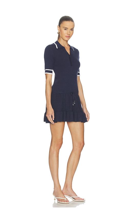 THE UPSIDE PLUME KNIT COLLARED DRESS IN NAVY.