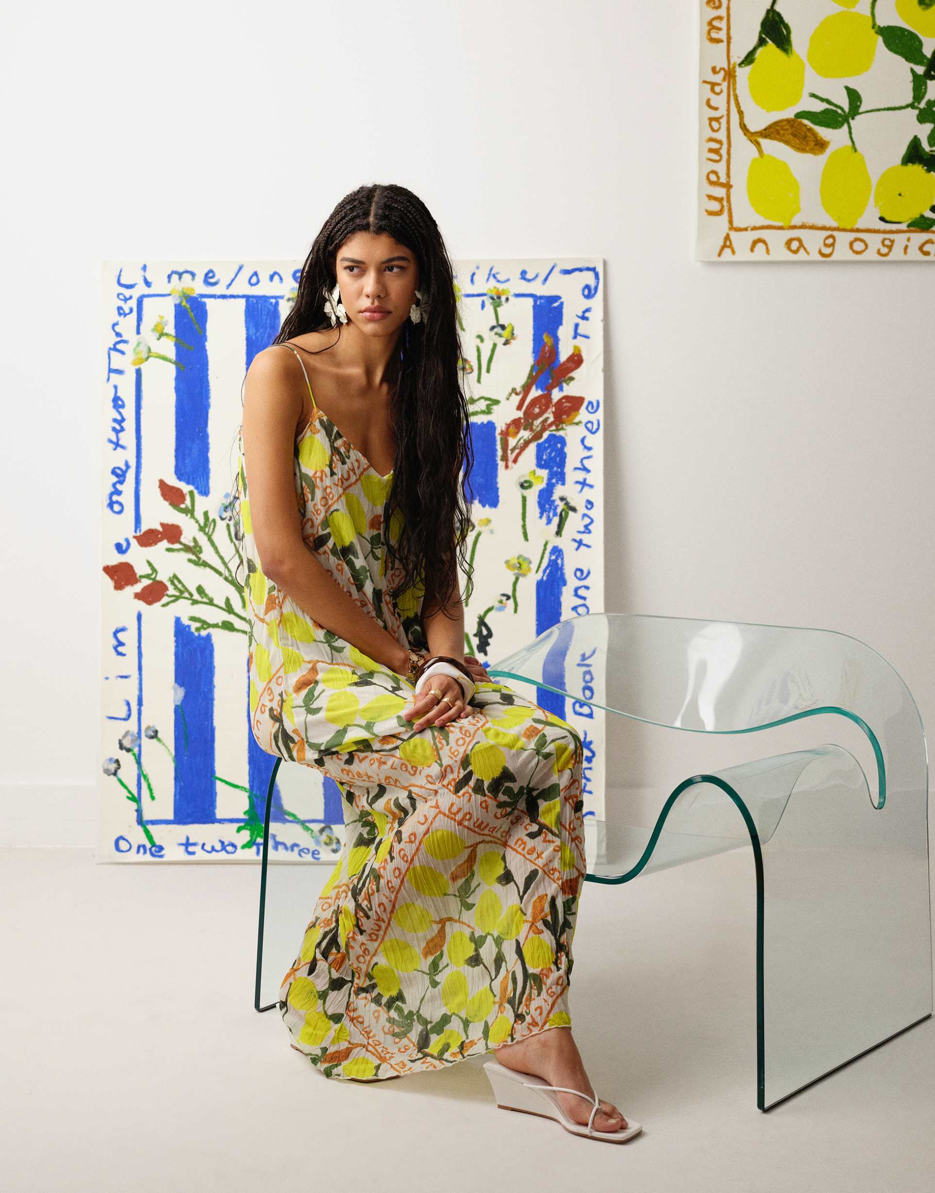 TOPSHOP CRINKLE MESH BRADLEY.B LEMON PRINT MAXI DRESS IN MULTI