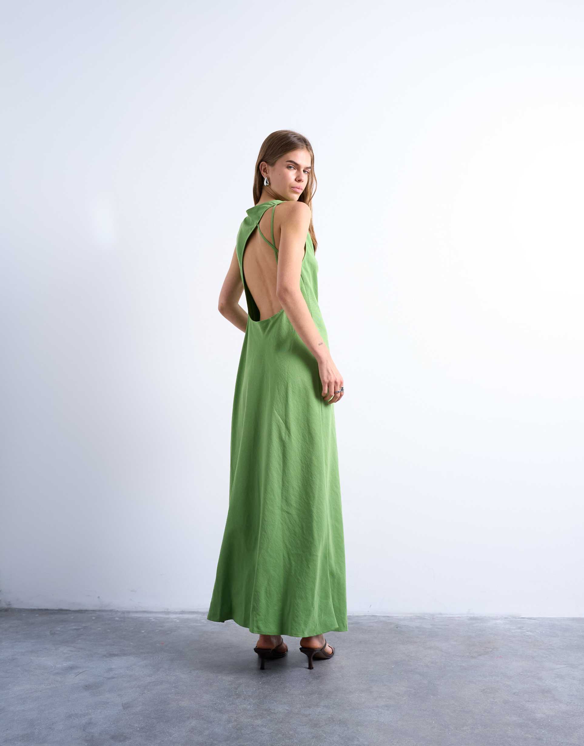 green midi slip dress