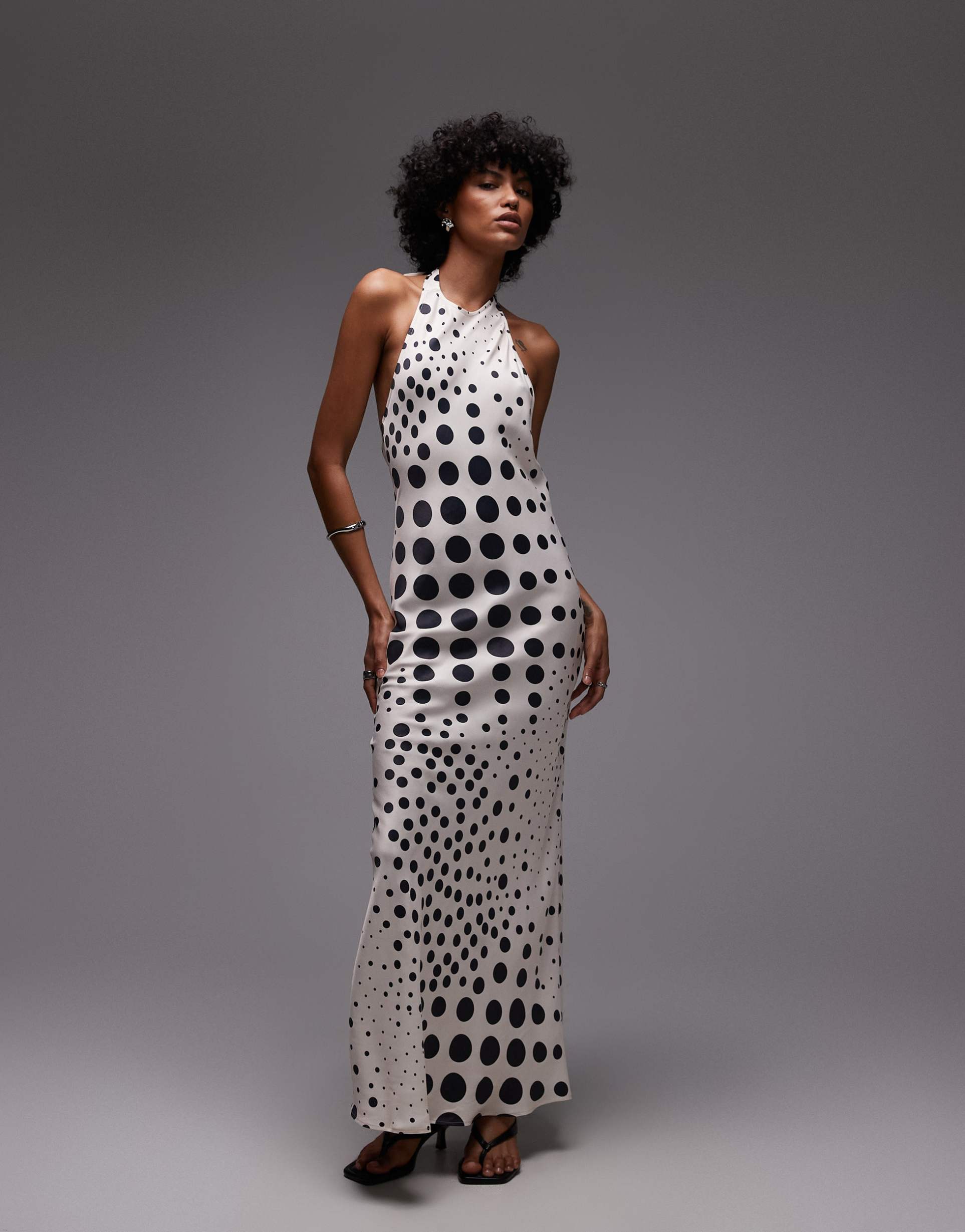 TOPSHOP HALTER NECK MAXI DRESS IN SCATTER ECRU POLKA DOTS