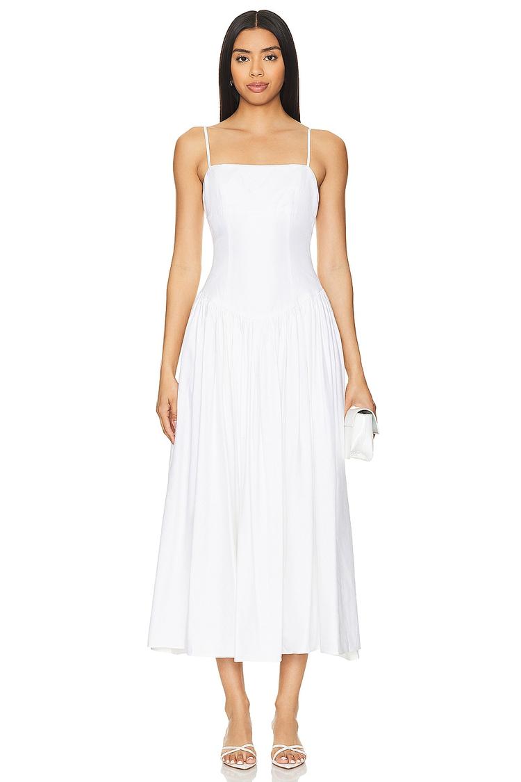 white linen midi dress