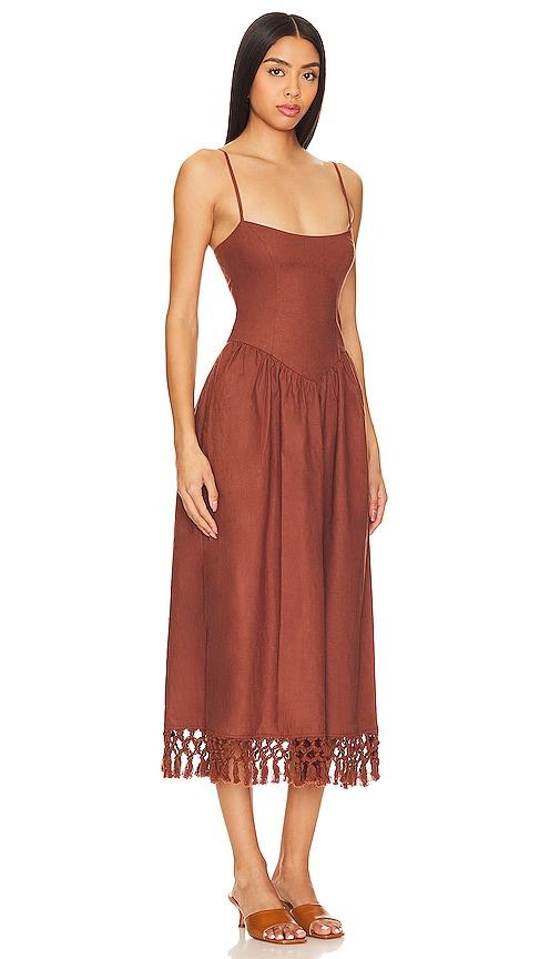 TULAROSA LEXI MIDI DRESS IN CHOCOLATE.