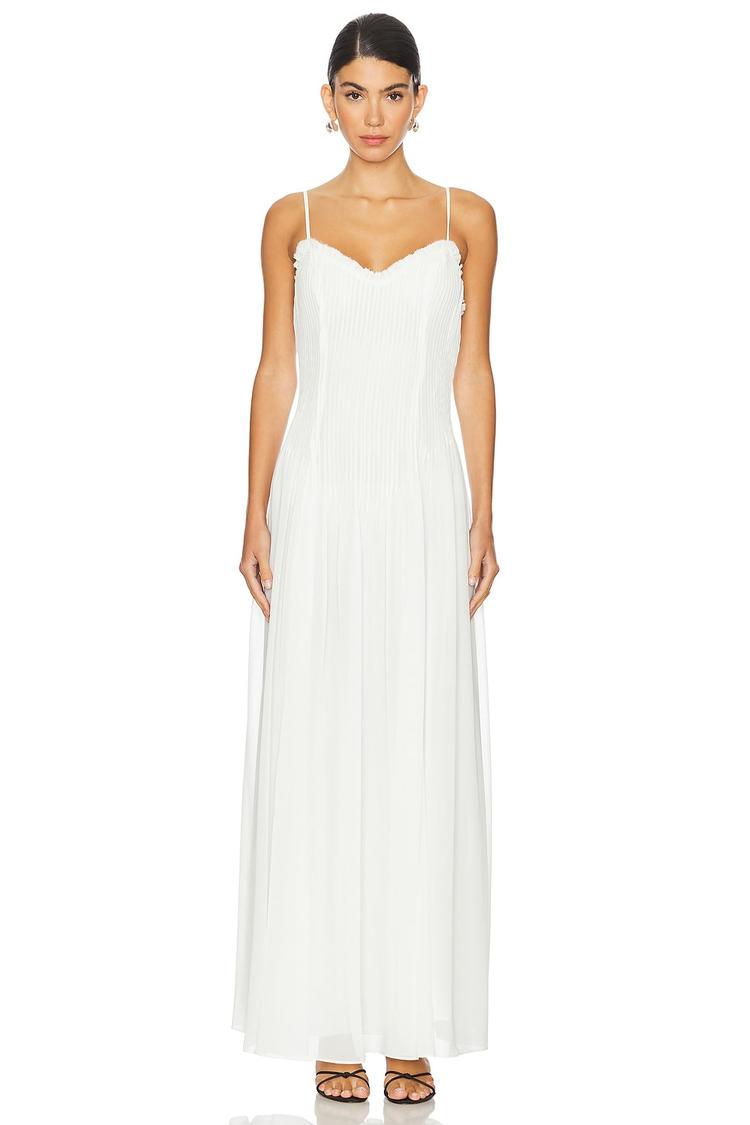 Soft chiffon fabric with a delicate pleated bodice and raw-cut sweetheart neckline creates an ethereal silhouette in this maxi slip dress. The adjustable spaghetti straps and open back with hidden zipper combine comfort with elegance, while the sheer layering adds a subtle allure. Ideal for warm spring and summer events, this slim fit gown is perfect for formal occasions, cocktail parties, and wedding guests seeking a minimalist yet sophisticated look.