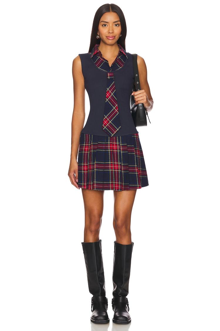 Classic preppy style meets casual chic in this sleeveless shift dress featuring a striking black base with bold red and white plaid patterning all over. The mini length and slim fit create a youthful silhouette, complemented by a neat collar neckline and wide strap sleeves. An attached tie detail at the front adds a playful bow accent. Crafted from 100% cotton, it offers breathability and ease for spring through autumn wear. Ideal for casual days, brunch outings, or polished workwear looks that balance comfort and style effortlessly.